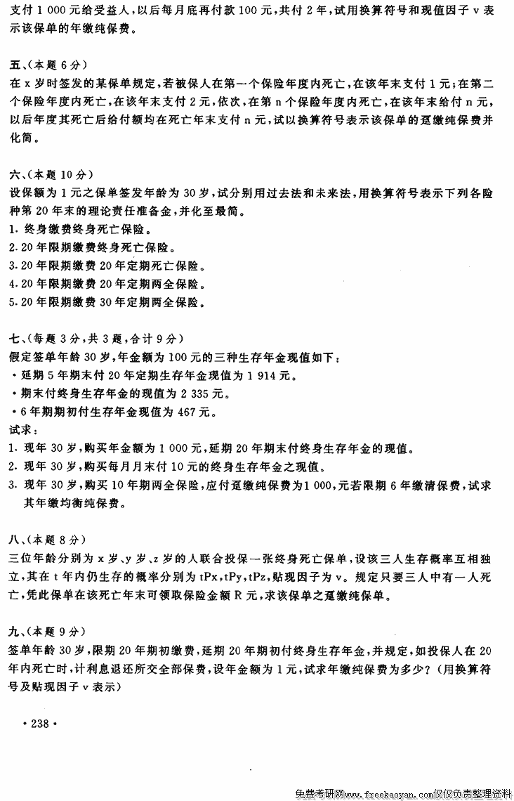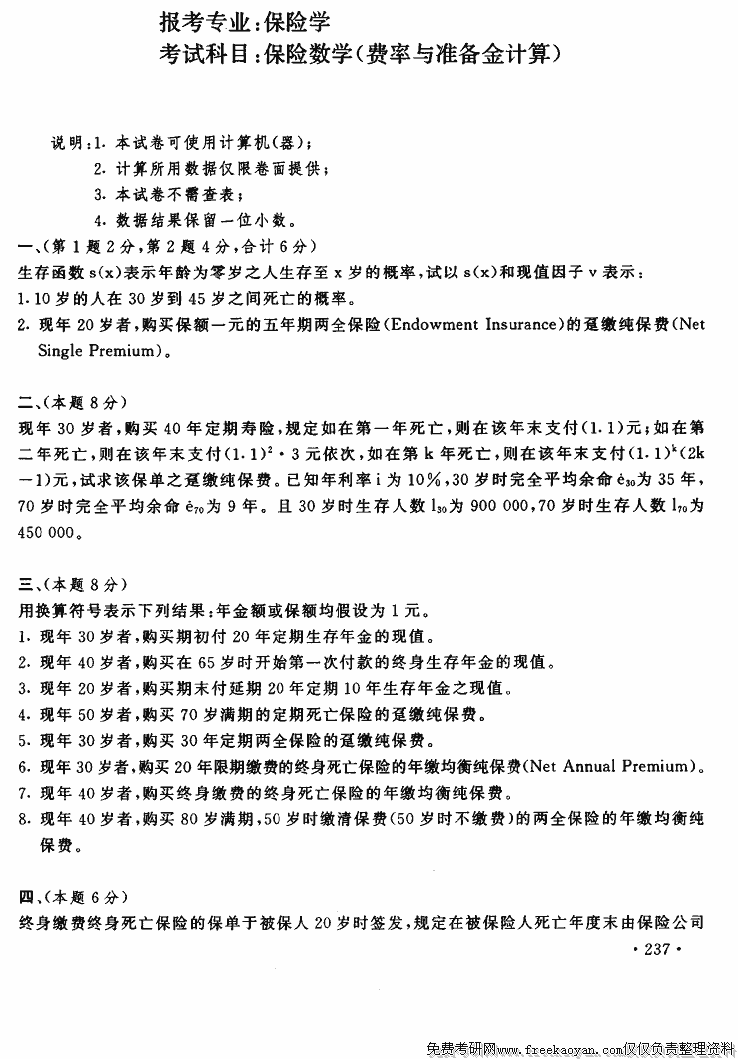 相关话题/保险 半岛在线注册真题 上海财经大学 数学 计算