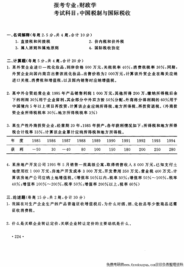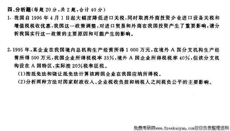 上海财经大学1997年半岛在线注册真题-中国税制和国际税收