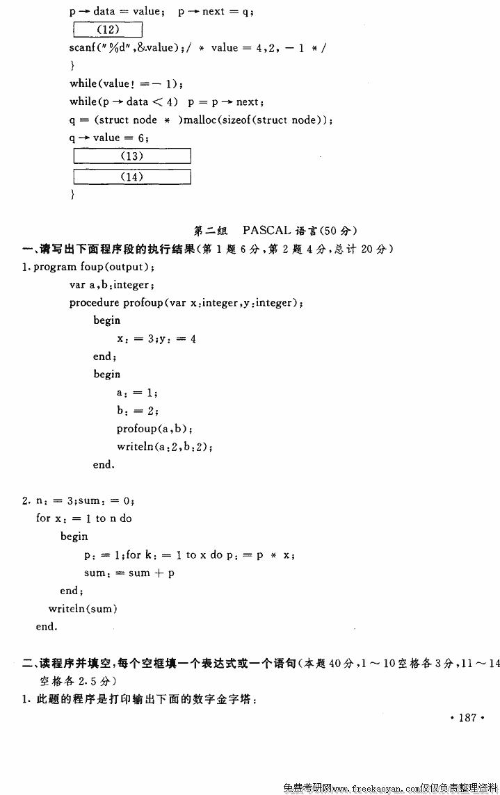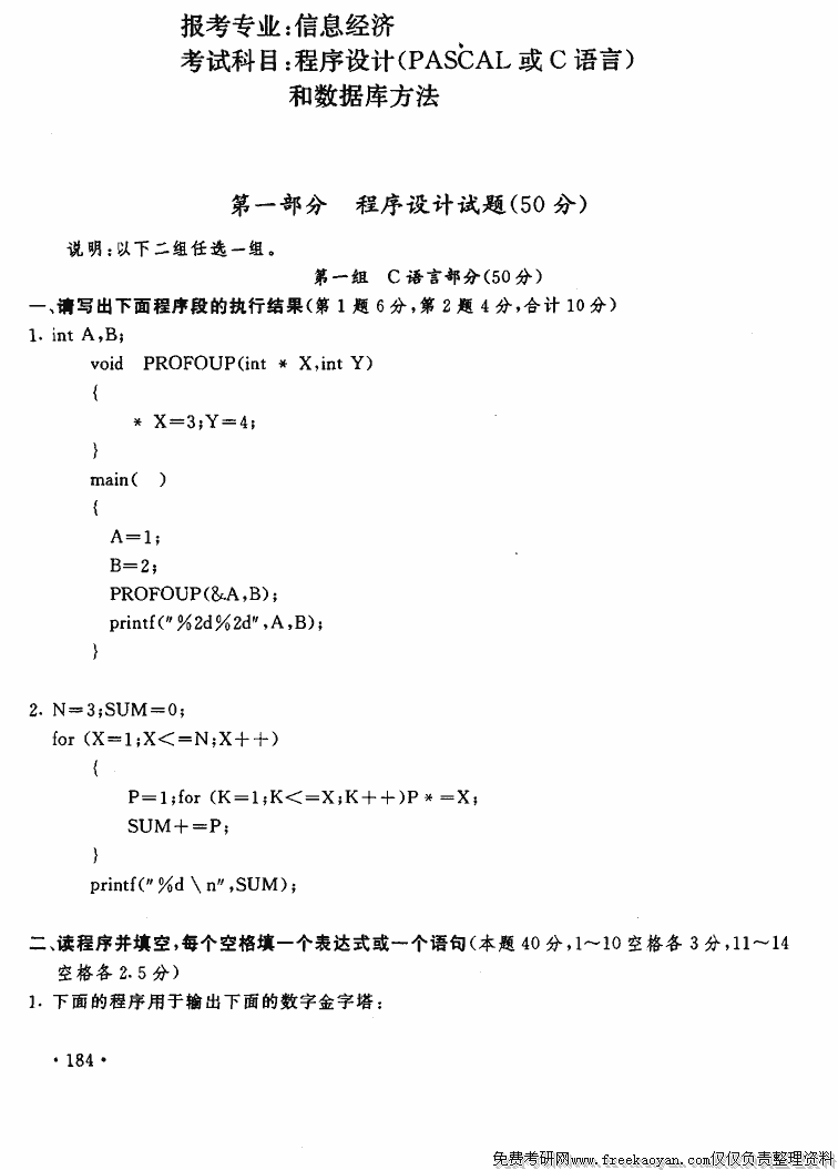 上海财经大学1996年半岛在线注册真题-程序设计(PASCAL或C语言)和数据库方法