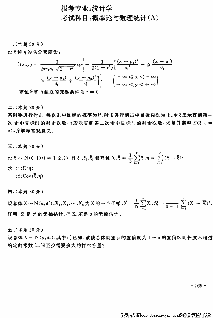 专业课半岛在线注册经验 本站小编 FreeKaoyan 2018-01-22上海财经大学1996年半岛在线注册真题-概率论与数理统计B