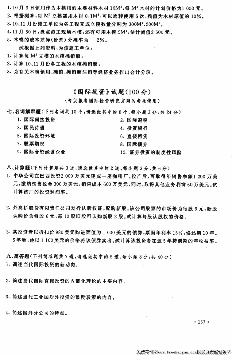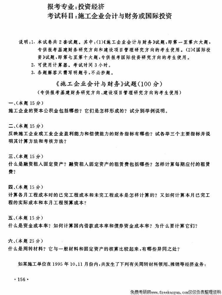 上海财经大学1996年半岛在线注册真题-施工企业会计与财务或国际投资