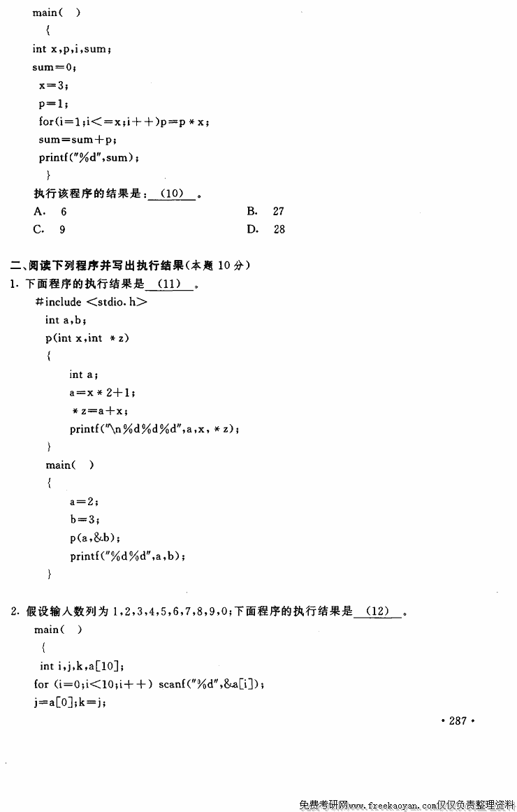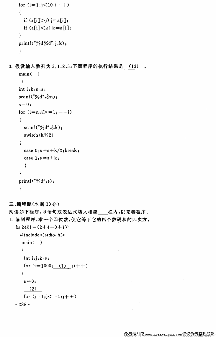 专业课半岛在线注册经验 本站小编 FreeKaoyan 2018-01-22上海财经大学1997年半岛在线注册真题-程序设计C语言