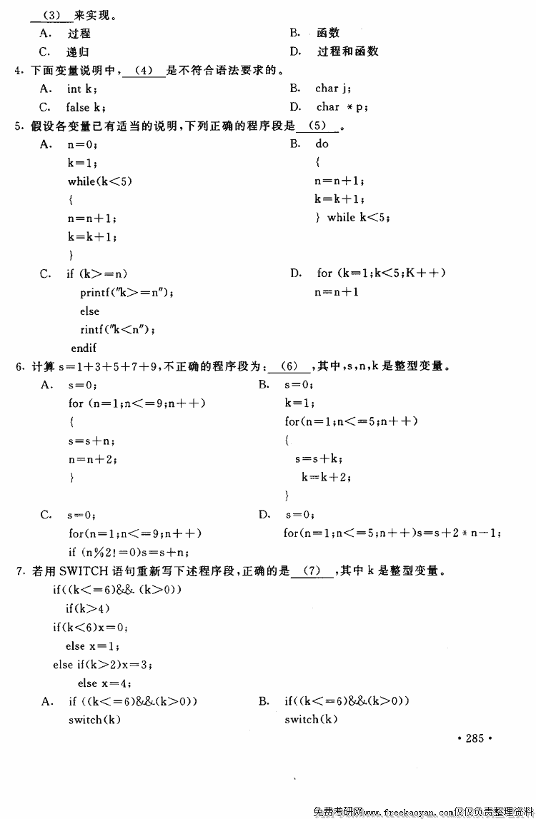上海财经大学1997年半岛在线注册真题-程序设计(PASCAL或C语言)和数据库方法二