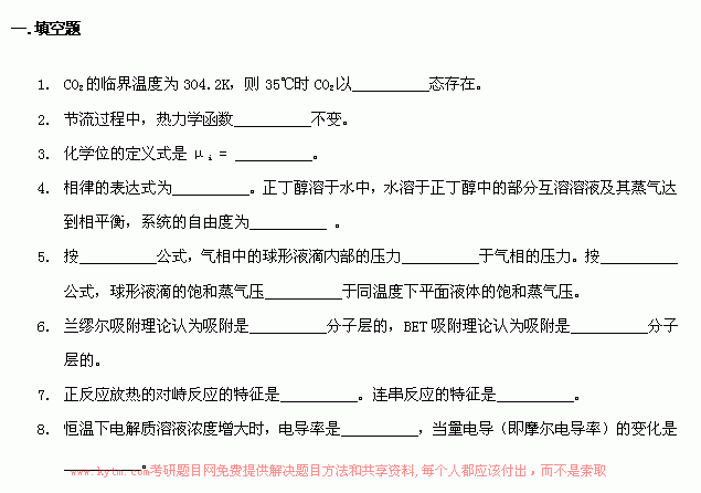 专业课半岛在线注册经验 本站小编 FreeKaoyan 2018-01-22华东理工大学2000年半岛在线注册真题-物理化学