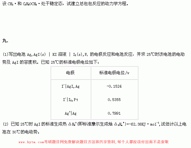 专业课半岛在线注册经验 本站小编 FreeKaoyan 2018-01-22华东理工大学1997年半岛在线注册真题-物理化学