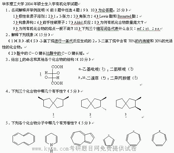华东理工大学2004年半岛在线注册真题-有机化学