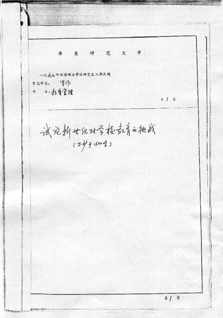 华东师范大学1997年半岛在线注册真题-写作教育管理