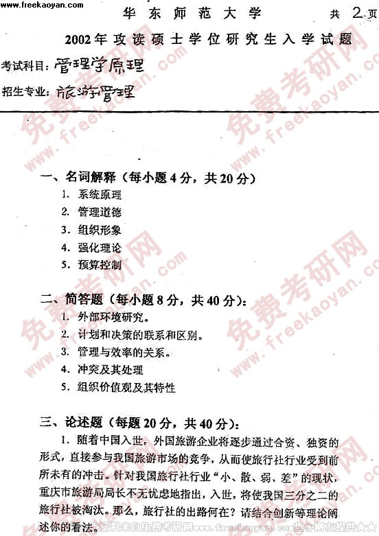 华东师范大学2002年半岛在线注册真题-管理学原理[旅游管理专业]