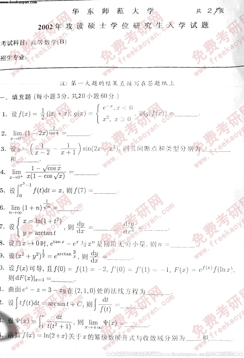 华东师范大学2002年半岛在线注册真题-高等数学B