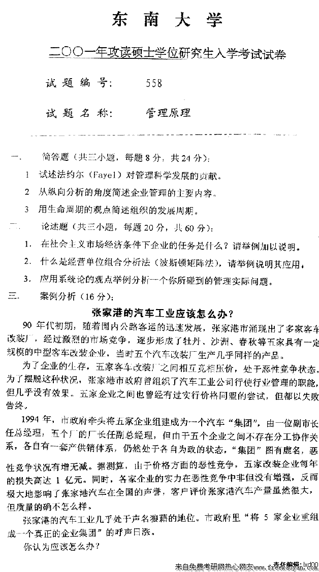 专业课半岛在线注册经验 本站小编 FreeKaoyan 2018-01-22东南大学2001年半岛在线注册真题-管理学