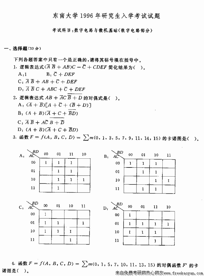 专业课半岛在线注册经验 本站小编 FreeKaoyan 2018-01-22东南大学 2001数据结构试题 二○○一年的题目凭记忆写一部分吧 : 一 : 1.设胜者树(selection tree)由k个记录缓冲区和k-1个非叶结点构成.概念上非叶结点表示其两个子女中关键字较小者,而实际上非叶结点存放的是什么? 3.给出KMP算法中失败函数f的定义,并说明利用f进行串模式匹 ...