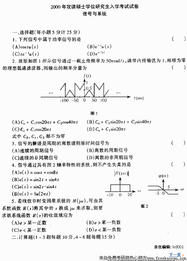 东南大学2000年半岛在线注册真题-模拟电子技术