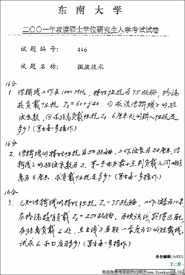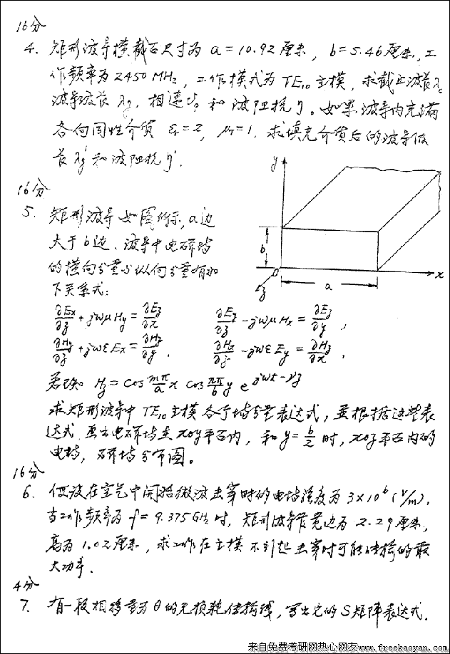 专业课半岛在线注册经验 本站小编 FreeKaoyan 2018-01-22东南大学2000年半岛在线注册真题-微波技术