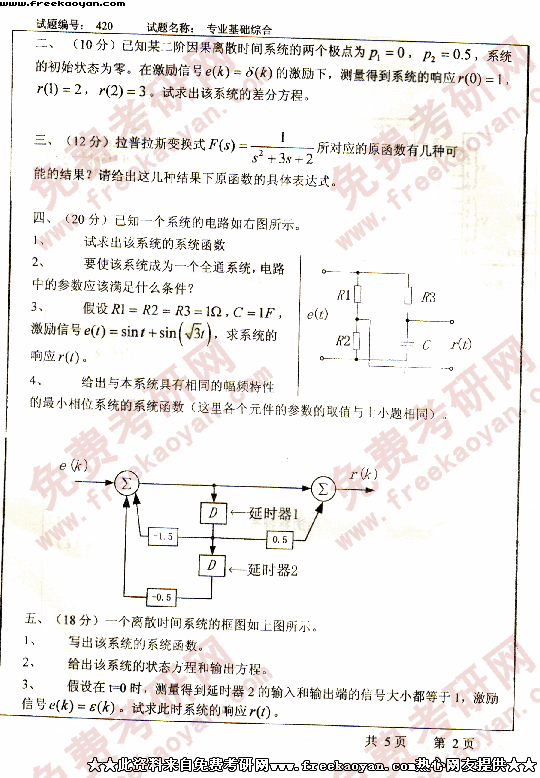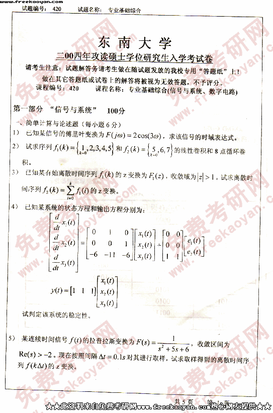 东南大学2001年半岛在线注册真题-模拟电子线路