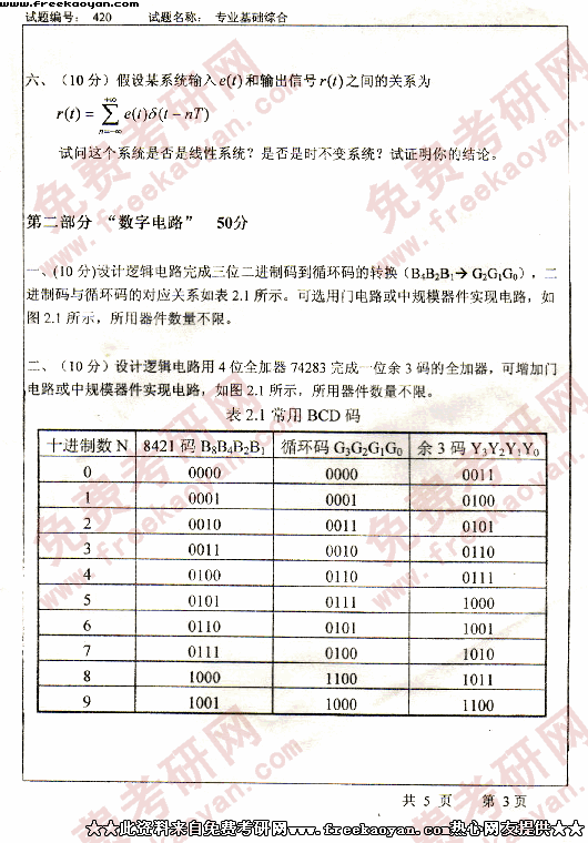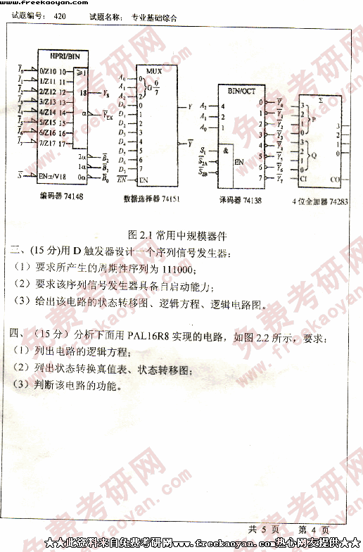 东南大学2001年半岛在线注册真题-数字电路与微机基础