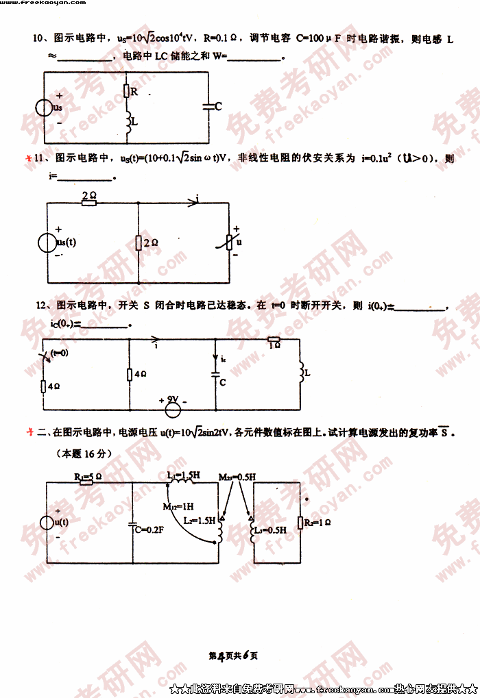 东南大学2004年半岛在线注册真题-电工基础(不全)