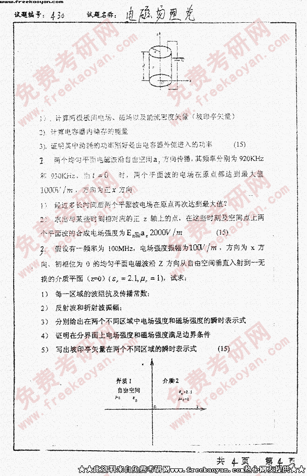 专业课半岛在线注册经验 本站小编 FreeKaoyan 2018-01-22东南大学2004年半岛在线注册真题-电磁场理论