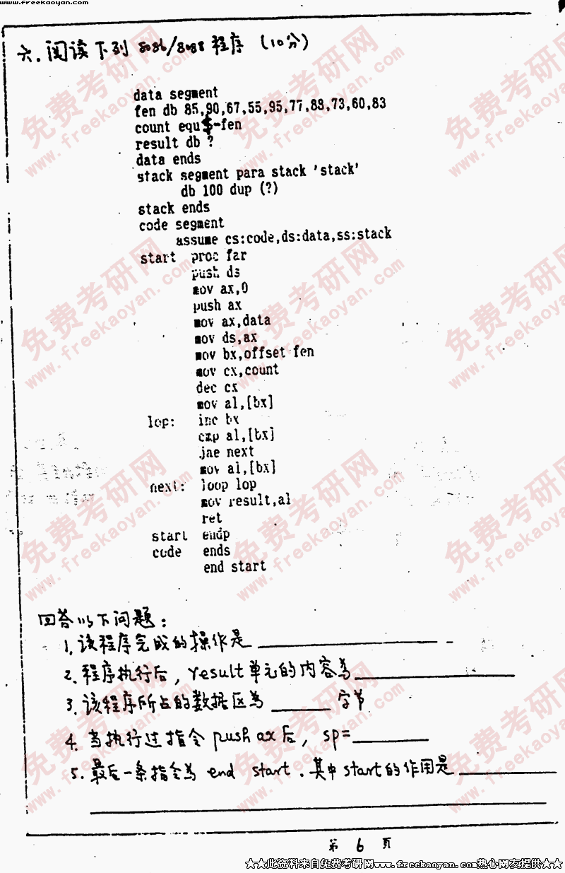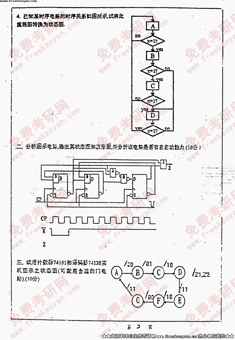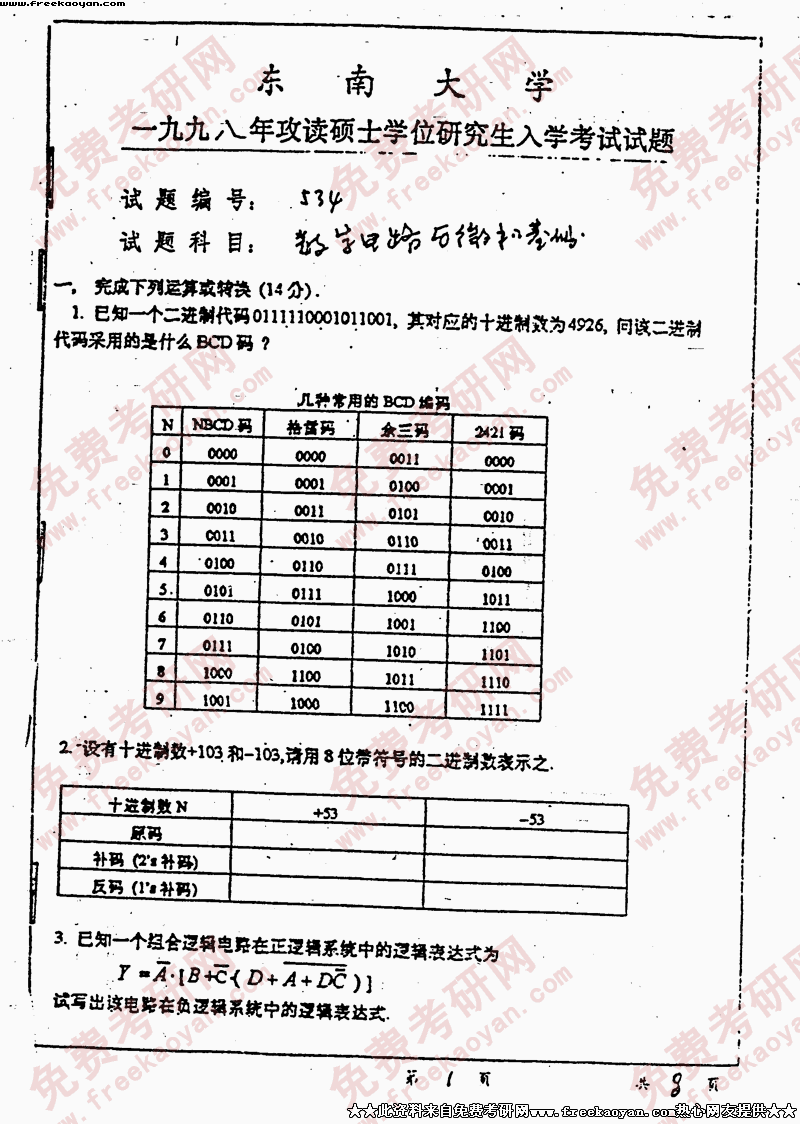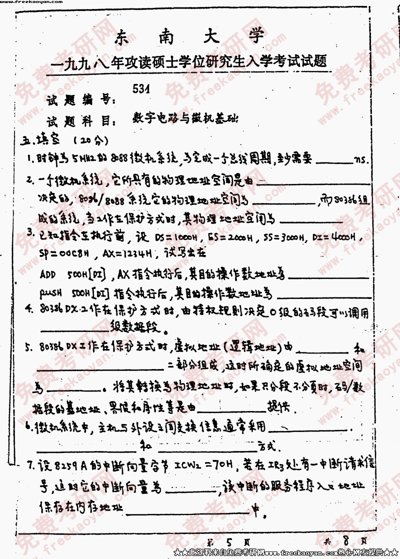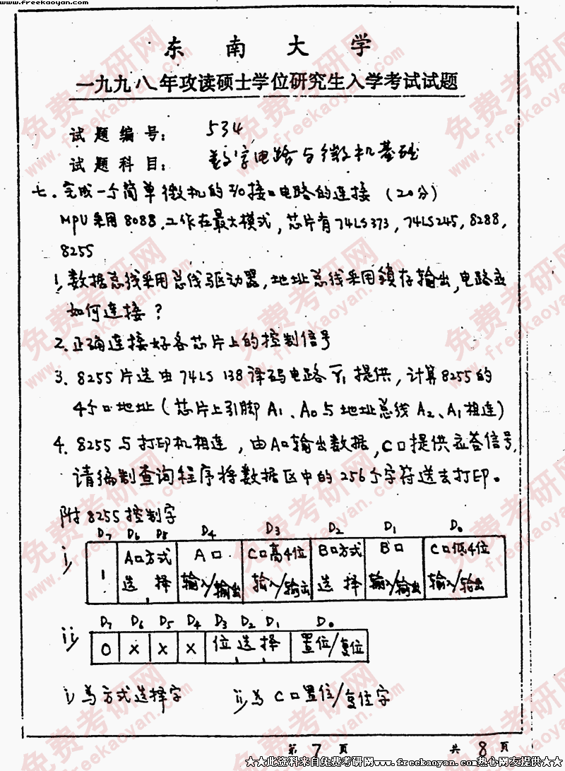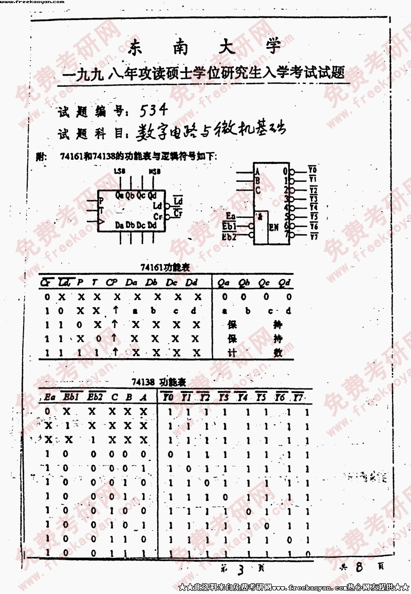 东南大学1998年半岛在线注册真题-数字电路与微机基础