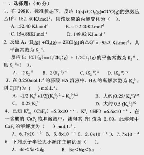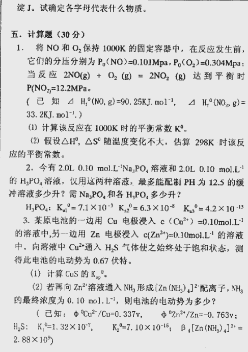 专业课半岛在线注册经验 本站小编 FreeKaoyan 2018-01-22南京理工大学2000年半岛在线注册真题-物理化学B