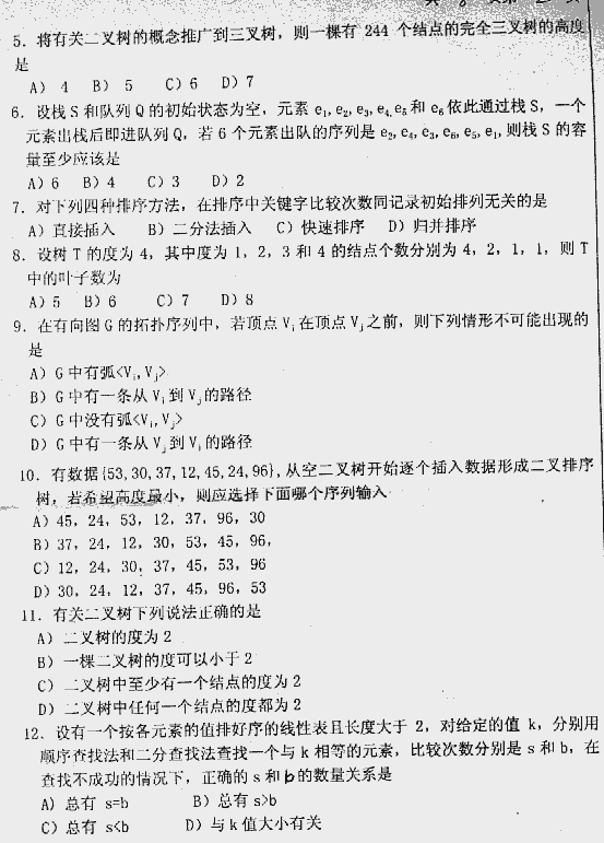 专业课半岛在线注册经验 本站小编 FreeKaoyan 2018-01-22东南大学1995年半岛在线注册真题-数据结构试题