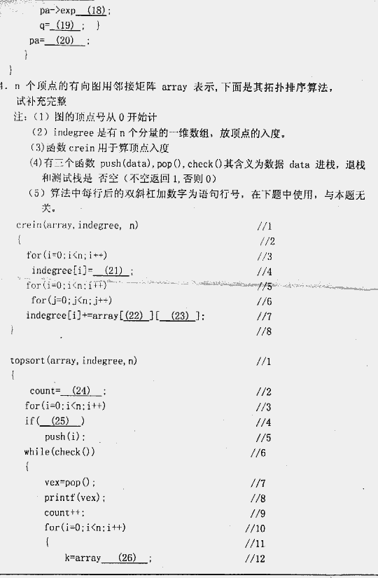 1.在磁带文件上进行二分查找行吗?为什么?(6分)2.分析确定下列程序中语句k:=k+1执行次数与n所成的数量级关系(即表示为O(f(n))的形式).(6分)k:=1; i:=k;while ibegin k:=k+1; i=i+k; end;3.外排序中为什么采用k-路合并而不采用2-路合并?这种 ...专业课半岛在线注册经验 本站小编 FreeKaoyan 2018-01-22东南大学1996年半岛在线注册真题-数据结构试题