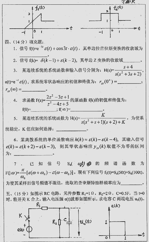 南京航天航空大学2000年半岛在线注册真题-信号与系统