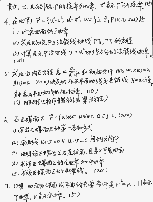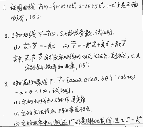 南京航天航空大学1999年半岛在线注册真题-微分几何