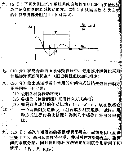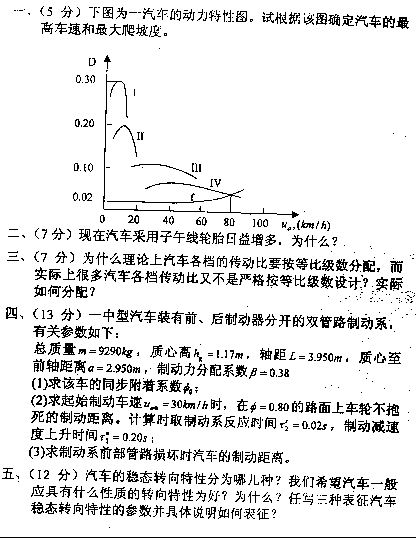 天津大学1999年半岛在线注册真题-汽车理论与汽车设计