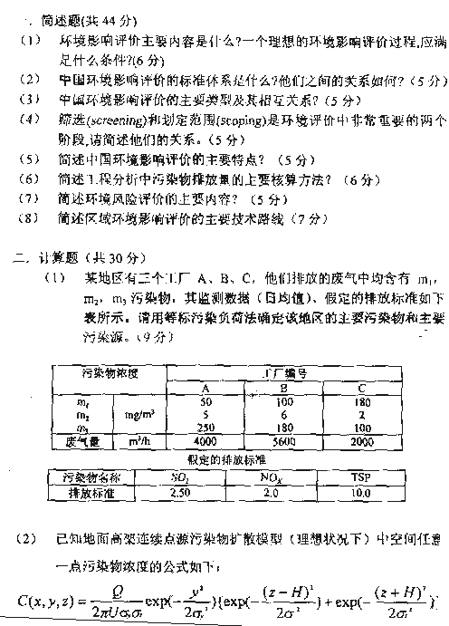 南开大学2000半岛在线注册真题-环境质量评价