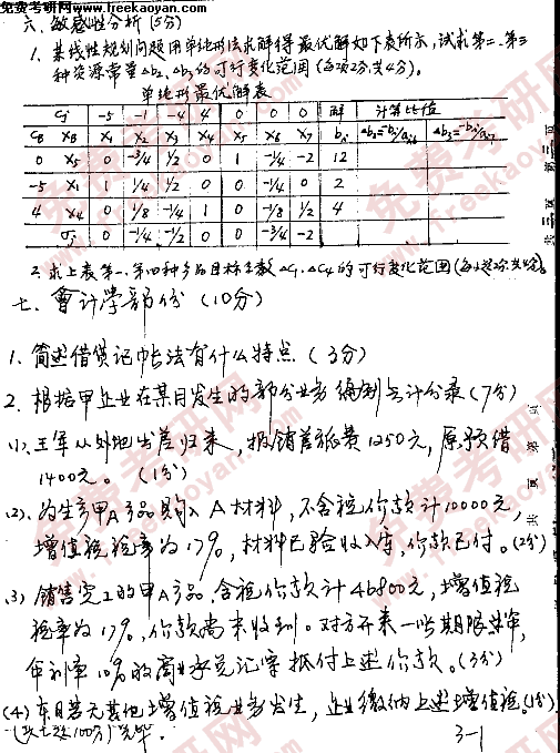 重庆大学1998年半岛在线注册真题-运筹学(含会计学原理)半岛在线注册试题