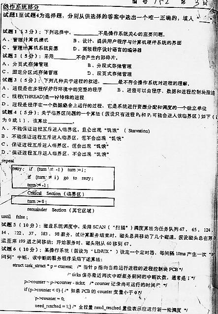 专业课半岛在线注册经验 本站小编 FreeKaoyan 2018-01-22浙江大学1999年计算机系研究生入学考试试题计算机专业课(甲)操作系统部分试题1至试题3为选择题,分别从供选择的答案中选出一个唯一正确的)试题1(5分):以下关于UNIX操作系统的叙述中,( )是错误的。A.UNIX对实时系统是不合适的,因为进程在核心态运行时不可抢占。B.UNIX终究会在市场上消失 ...