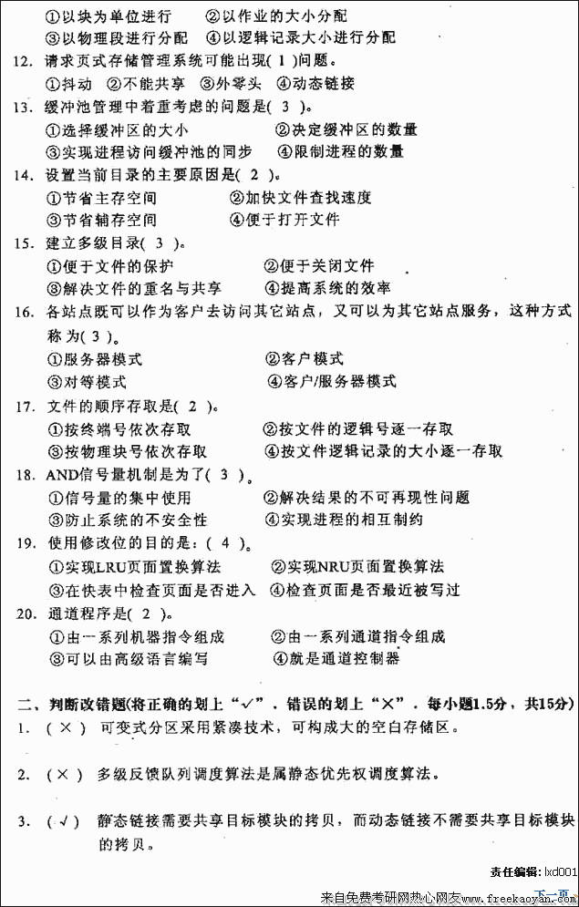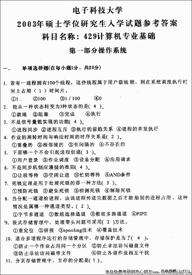 专业课半岛在线注册经验 本站小编 FreeKaoyan 2018-01-22浙江大学1999年计算机系研究生入学考试试题计算机专业课(甲)操作系统部分试题1至试题3为选择题,分别从供选择的答案中选出一个唯一正确的)试题1(5分):以下关于UNIX操作系统的叙述中,( )是错误的。A.UNIX对实时系统是不合适的,因为进程在核心态运行时不可抢占。B.UNIX终究会在市场上消失 ...