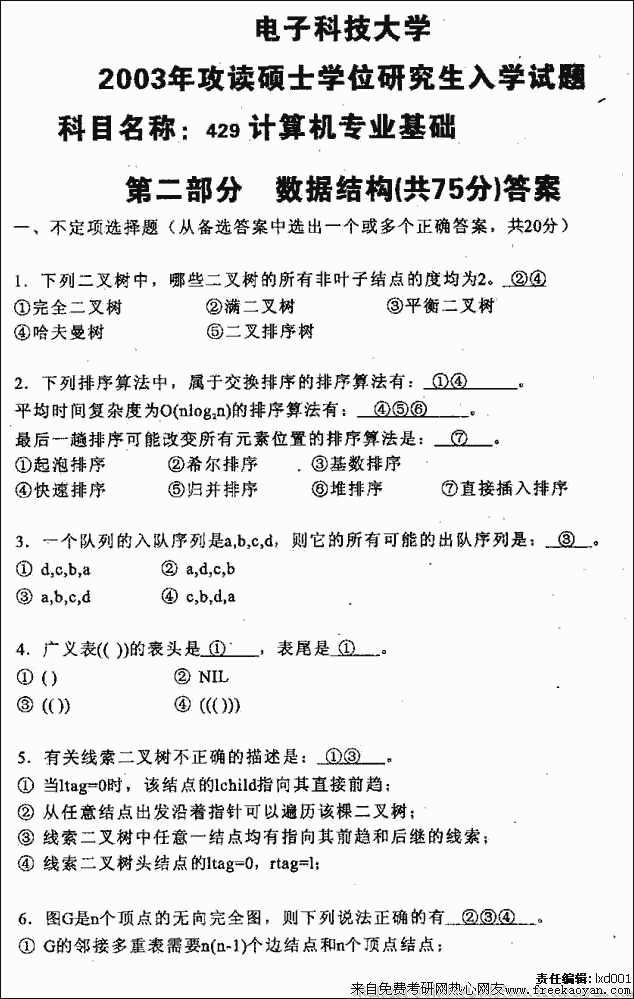 专业课半岛在线注册经验 本站小编 FreeKaoyan 2018-01-22浙江大学2000年计算机系研究生入学考试试题考试科目:计算机科学基础一、根据下列各题要求填空1语句:char s[]=2/tgraduate2;printf(“%s%d”,s+2,sizeof(s));将输出:A) graduate 10 B)graduate 11 (C)raduate 10 D) ...