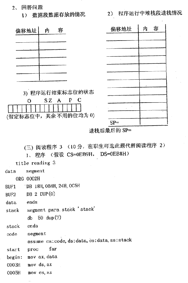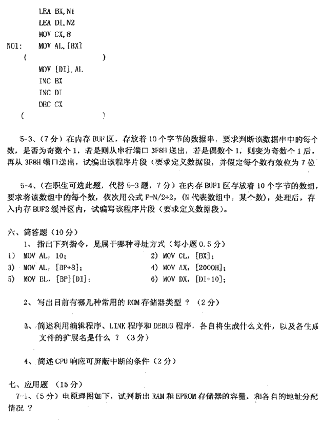 2000年微机原理与数字电路试题 注:应届生作所有不加*的题,往届生可在加*号题与不加*号同题号题中任选一题。一、 单项选择题(共10分)从每小题的四个备选答案中选出一个正确答案,并将正确的番号填入题干的括号内。1, 计算机使用总线结构的优点是便于实现积木化,同时()。1) 减少了信息传输量2) 提 ...