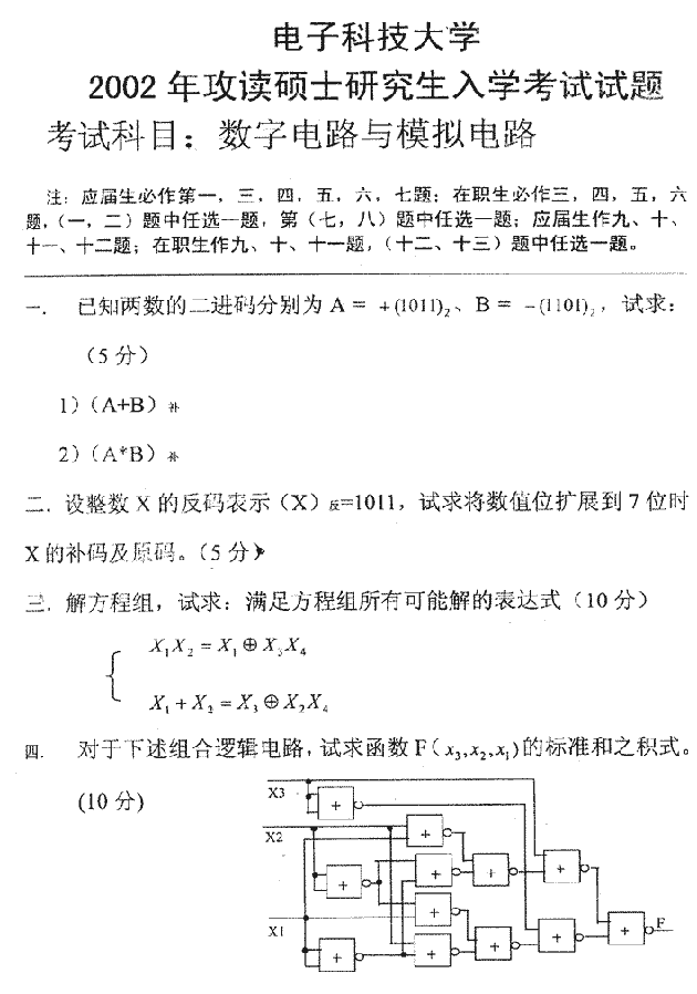 电子科技大学2002年半岛在线注册真题-数字电路与模拟电路