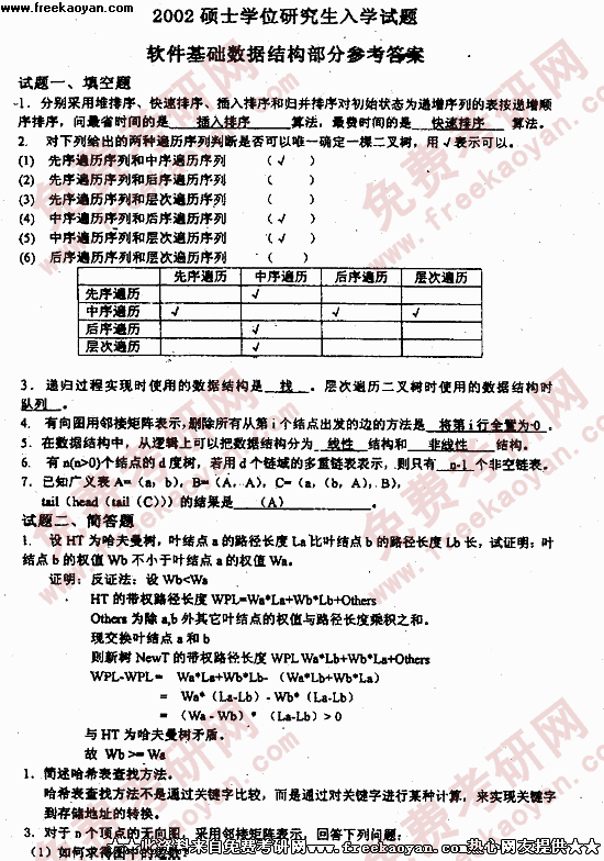 电子科技大学2002年半岛在线注册真题-软件基础数据结构部分参考答案