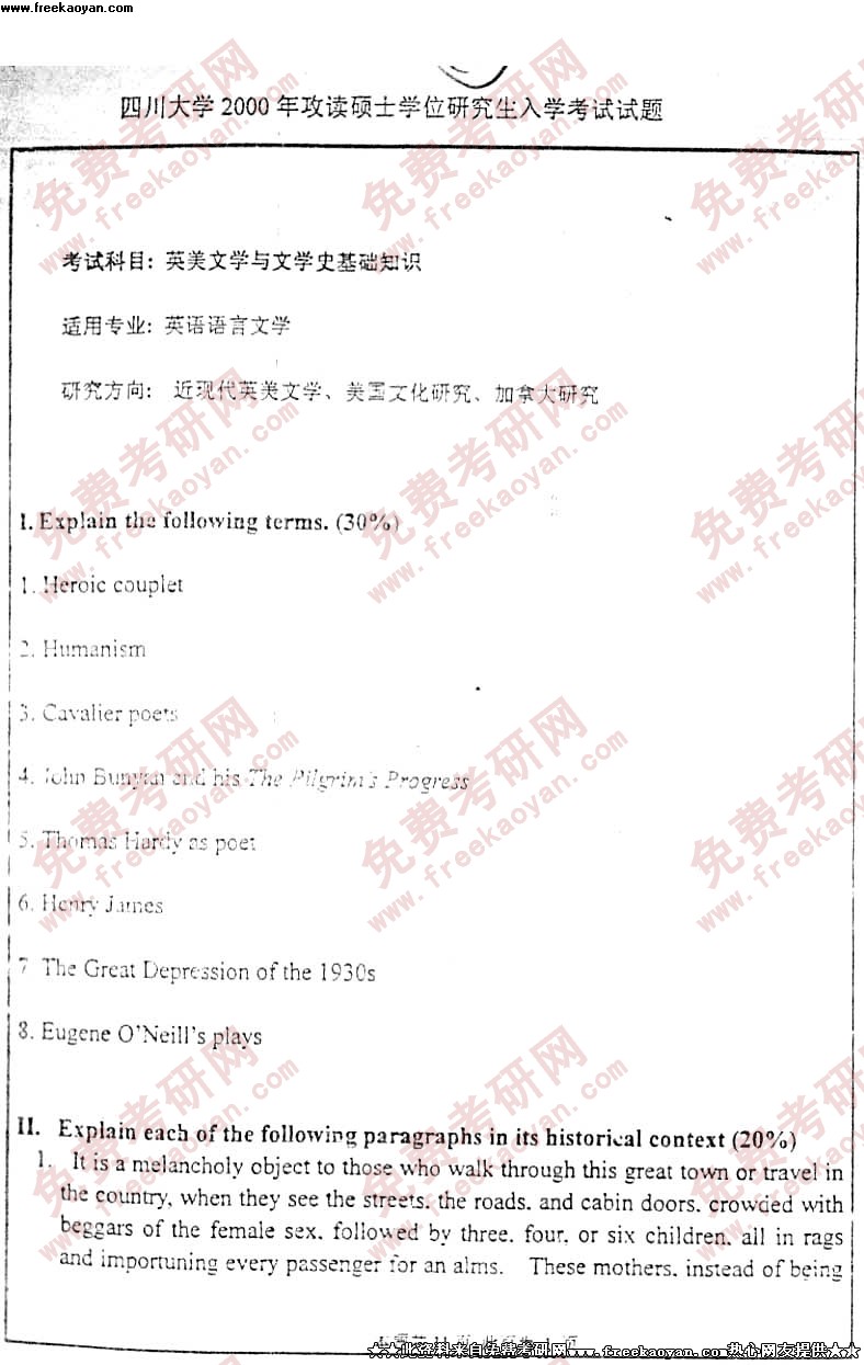 四川大学2000年半岛在线注册真题-英美文学与文学史基础知识试题2