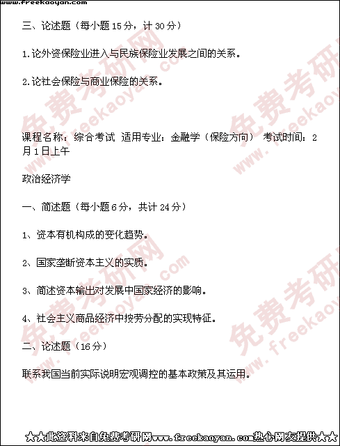 西南财经大学2000年半岛在线注册真题-综合考试(政治经济学、人身保险、财产保险)