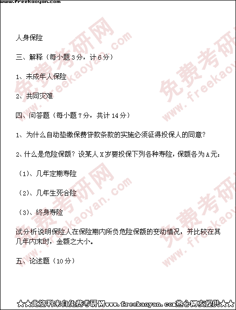 西南财经大学2000年半岛在线注册真题-保险学原理
