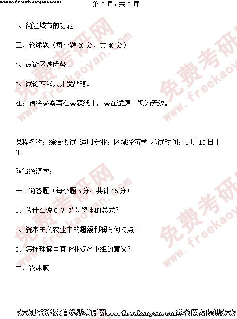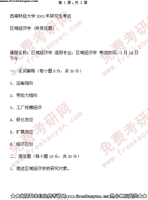西南财经大学2001年半岛在线注册真题-区域经济学(所有试题)