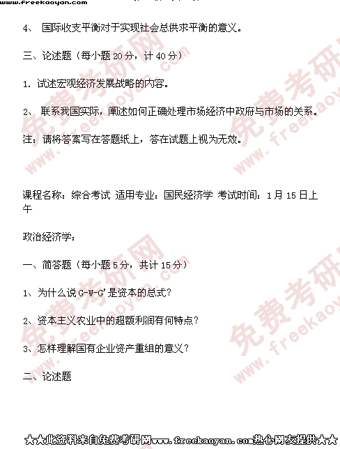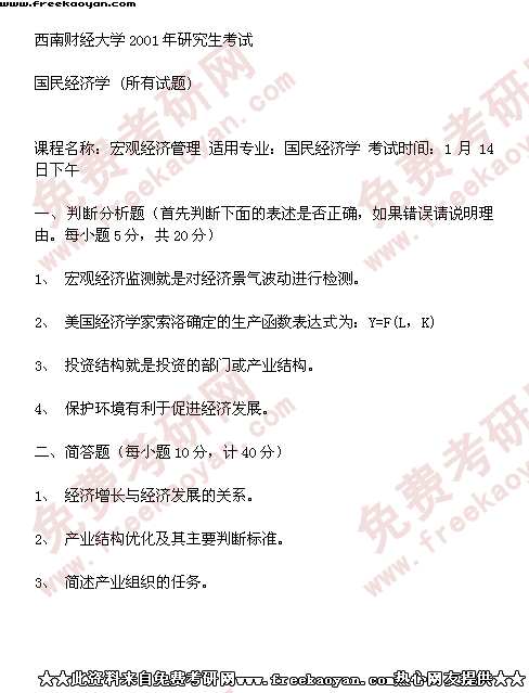 西南财经大学2001年半岛在线注册真题-国民经济学(所有试题)