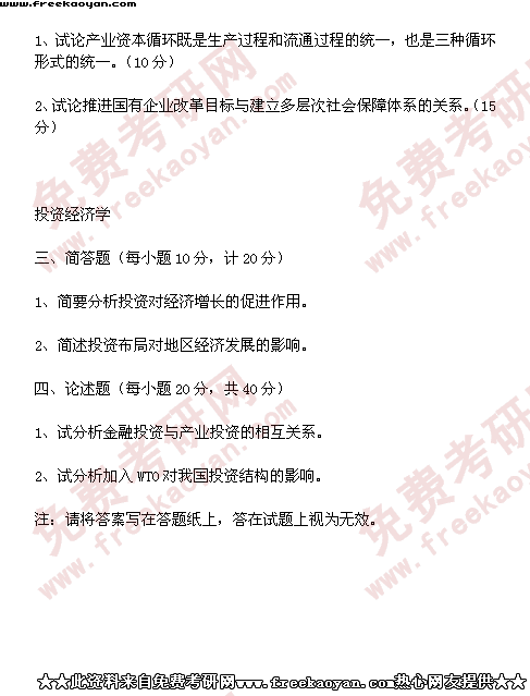西南财经大学2001年半岛在线注册真题-技术经济及管理