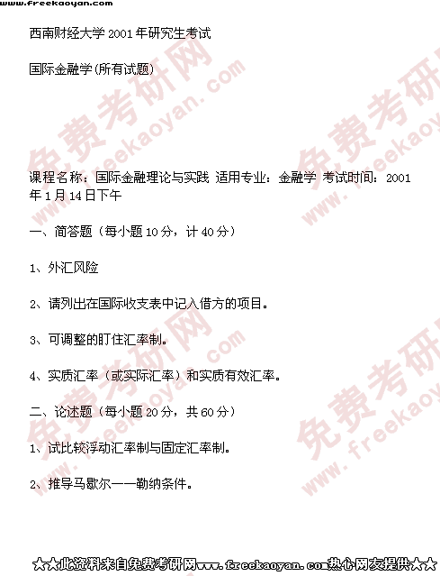 西南财经大学2001年半岛在线注册真题-国际金融学(所有试题)