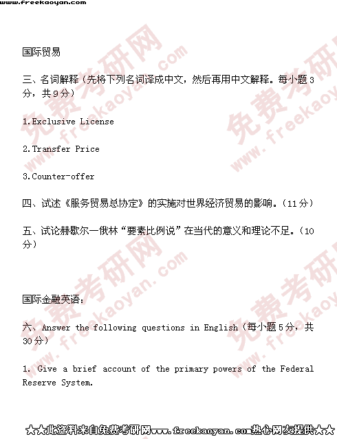 西南财经大学2001年半岛在线注册真题-国际贸易学(所有试题)