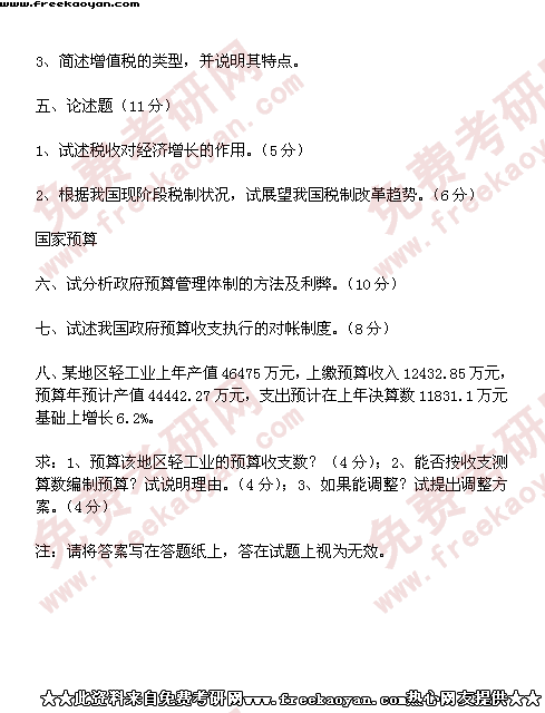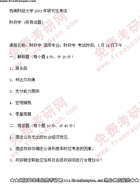 西南财经大学2001年半岛在线注册真题-财政学(所有试题)