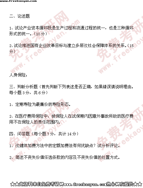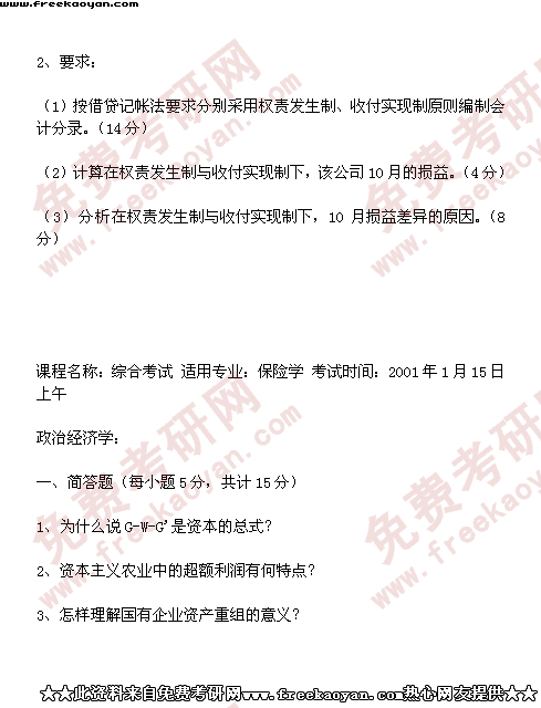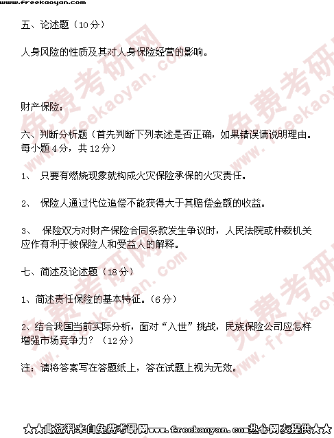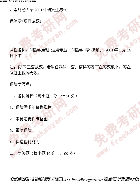 西南财经大学2001年半岛在线注册真题-保险学(所有试题)
