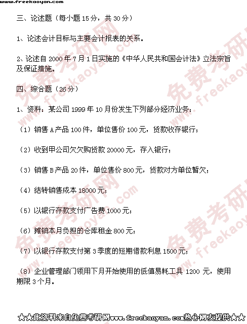 西南财经大学2001年半岛在线注册真题-会计学(所有试题)