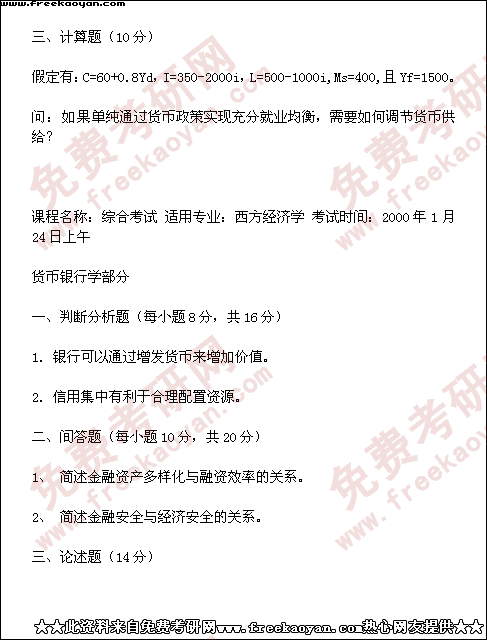 西南财经大学2001年半岛在线注册真题-金融学(货币方向所有试题)