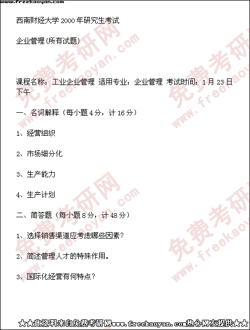 西南财经大学2000年半岛在线注册真题-企业管理(所有试题)