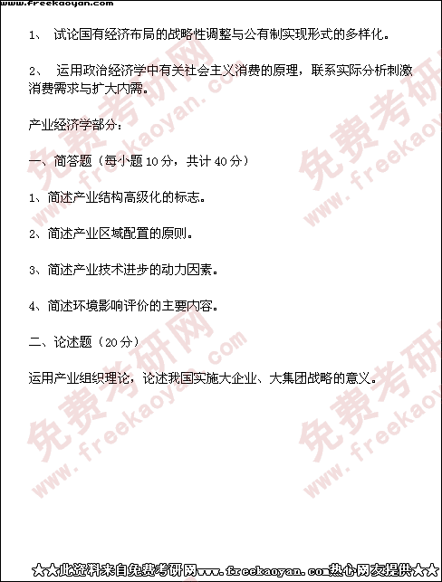 西南财经大学2001年半岛在线注册真题-产业经济学(所有试题)